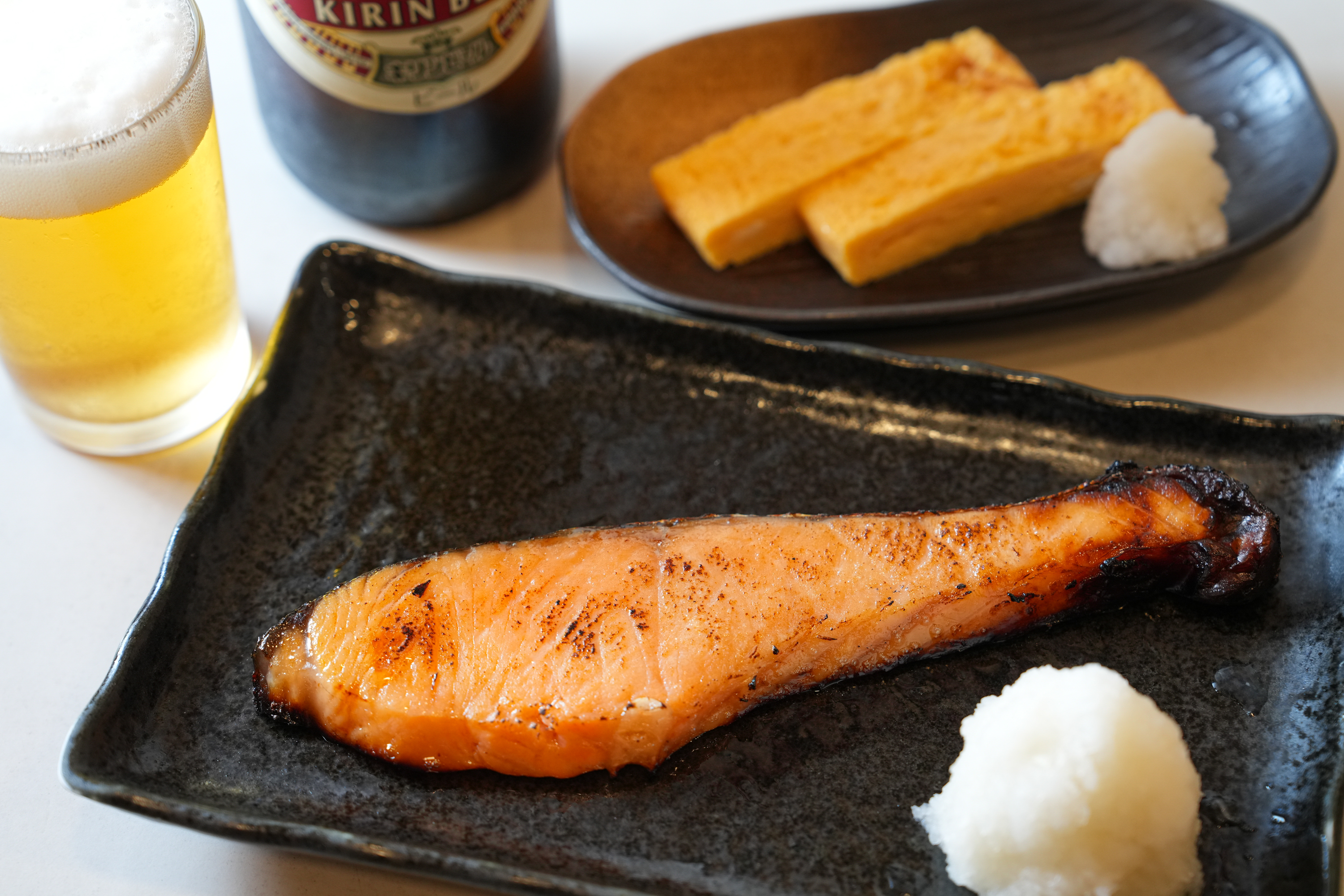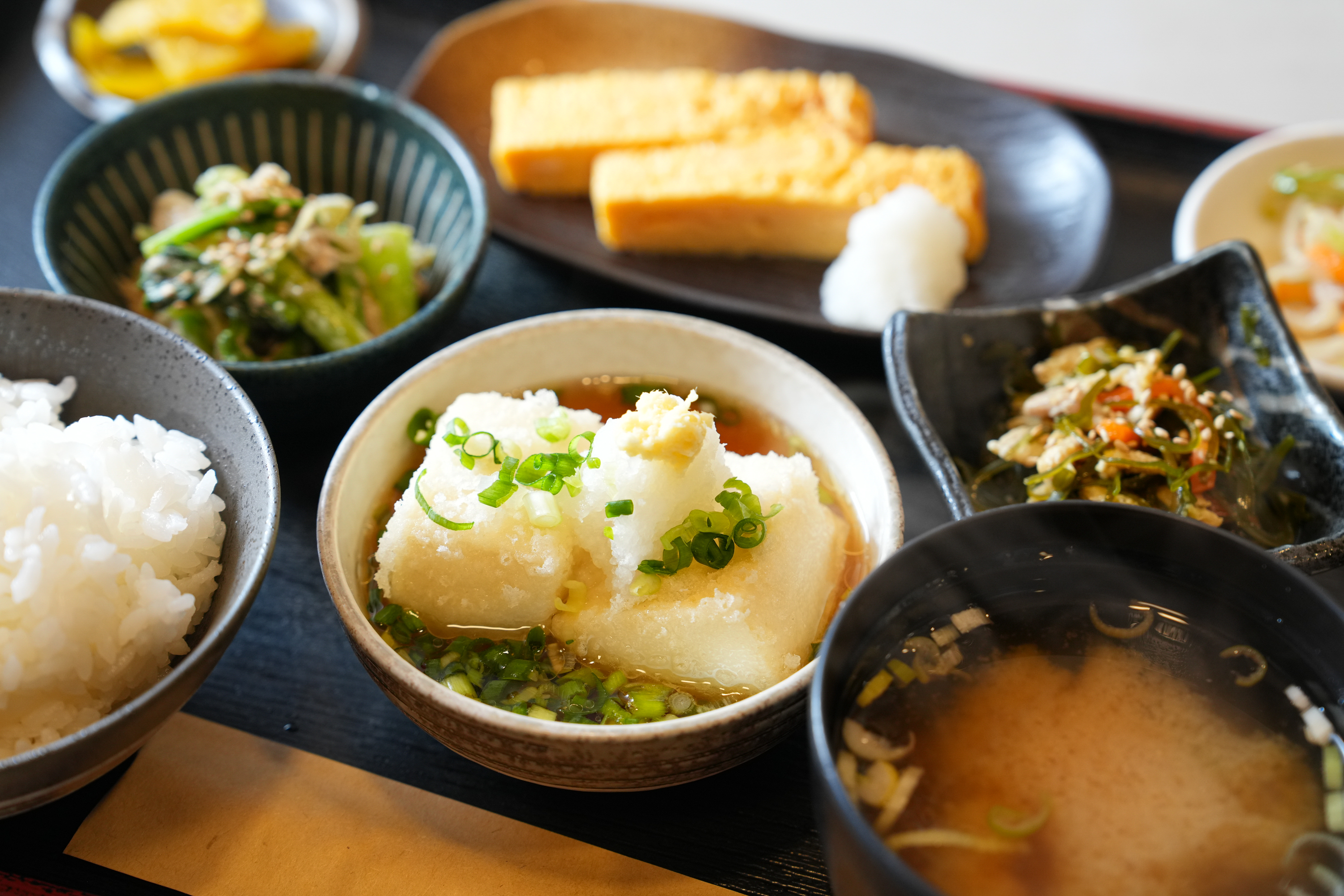 大人気の栄養バランス抜群の「からす定食」を始め、肉料理に魚料理にバラエティ豊かな日替わり惣菜にごはんのお供もいろいろ。定番定食ほか、揚げ物をチョイスできたり、惣菜を一部選べたり。お客さんが自身で日替わり定食をカスタマイズできるのも楽しいところ。鮭の西京焼きは店内で手仕込み、刺身は注文を受けてからカットなど、手間ひまを惜しまない調理の先に同店の美味しさが生まれます。