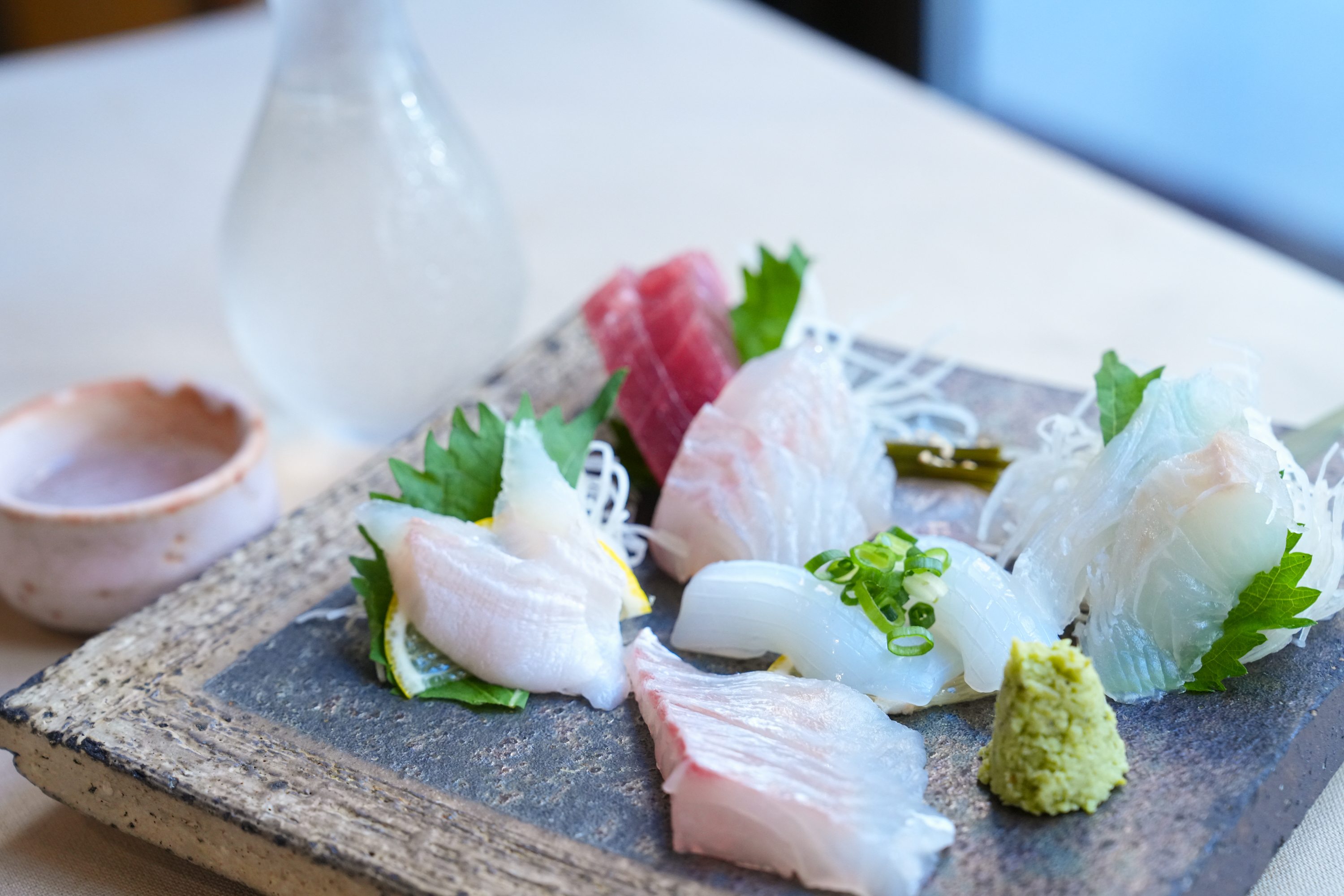 和食をベースとした得意の魚料理に特化しながらもメニューは幅広く、開業時からの一番人気である「ちとからコロッケ」を始め、「家庭ではなかなか作らない、手間ひまかけたプロならではのメニューと味」を追求しています。サラダ5種類のドレッシングやソース、味噌田楽の玉味噌などの調味料もすべて一からの手作りを貫いています。また、魚と並んで主役となる旬の野菜は決まって、お客さんでもある地元の池亀農園から仕入れています。